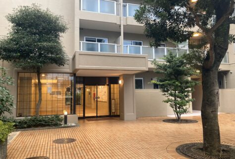 静かな住宅街に佇む美しいタイル張りのマンション